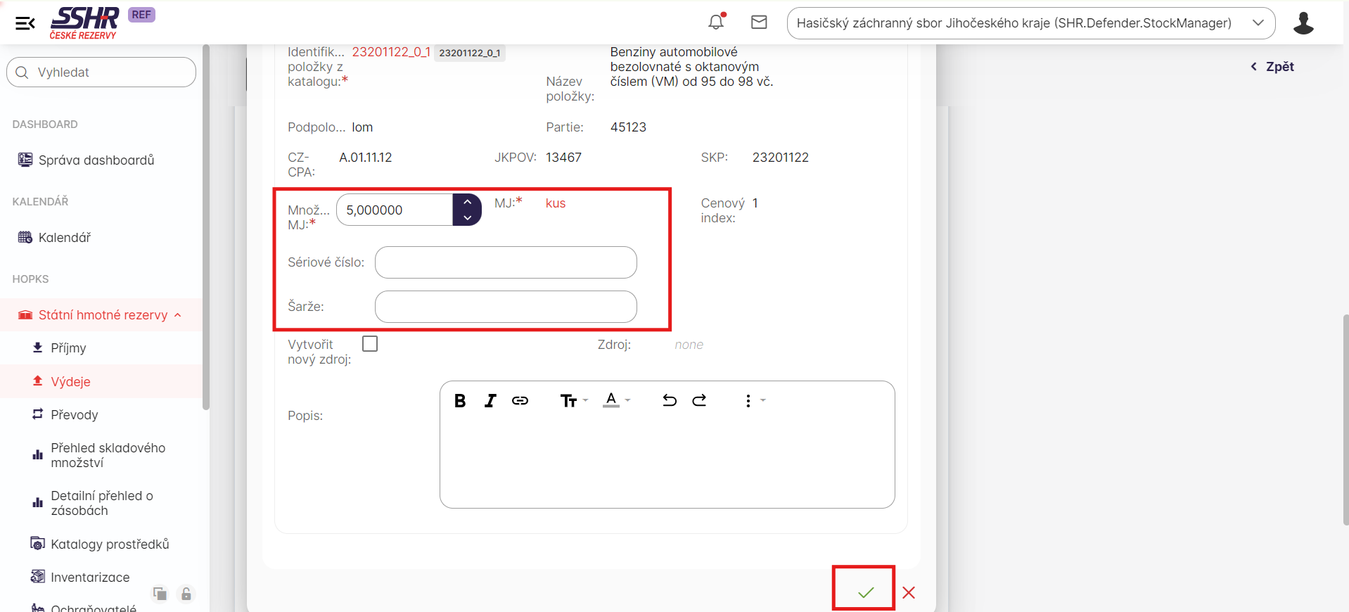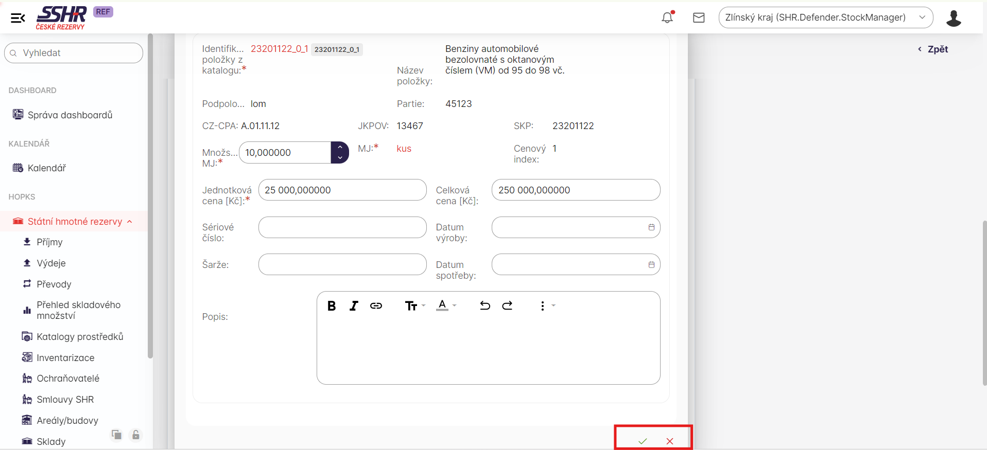 SHR.Defender.StockManager tlačítko "Připravit k zaúčtování". Kliknutím