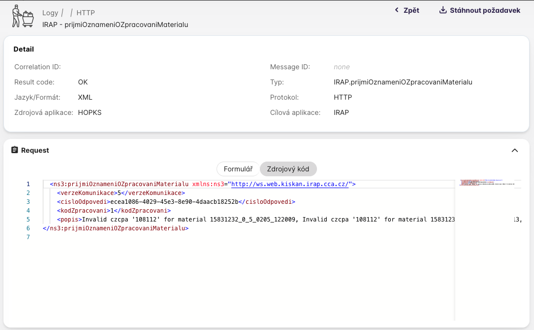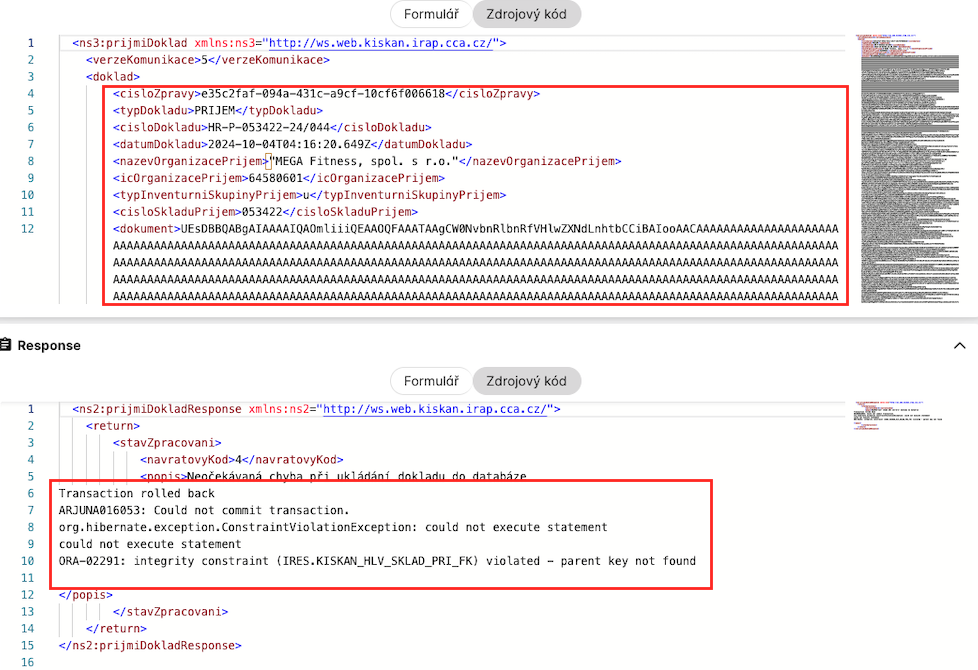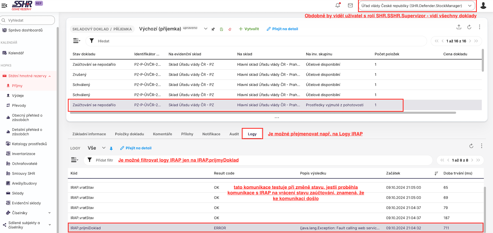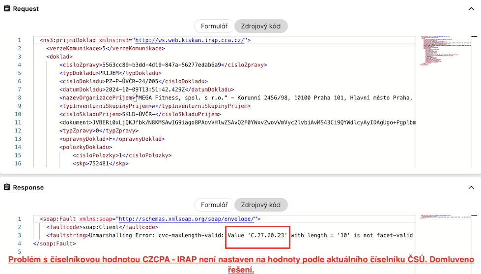 Po rozkliknutí error logu - důvod nezaúčtování, odpověď IRAP, problém s číselníkem CZCPA. dnes představeno řešení.