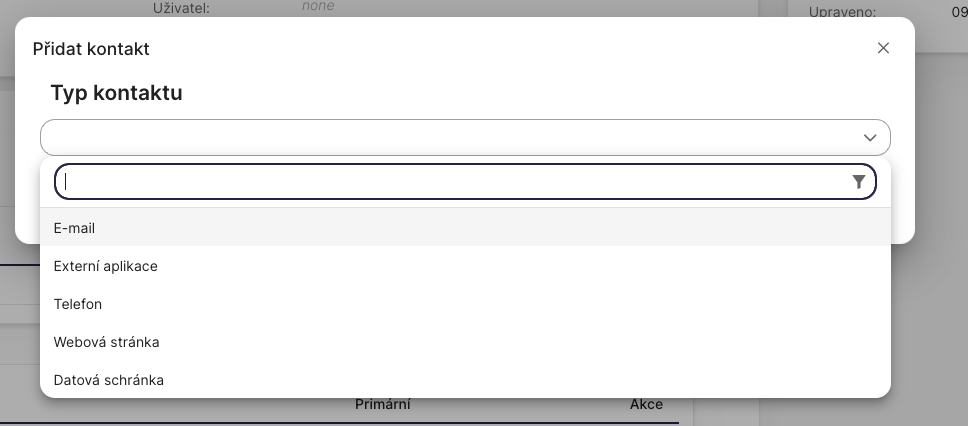 Sekce Další kontakty - ukazuje další kontakty, např. datovou schránku.