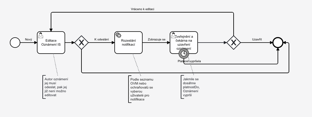 Předat k uzavření - tato možnost slouží pro zrychlení ukončení, tj. systém nebude čekat, až uběhne doba konce platnosti a oznámení je uzavřeno.