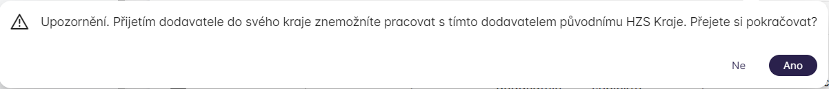 Kliknutím na tlačítko „Ano" se nastaví hodnotu sloupce „Původní kraj" dodavatele na kraj uživatele