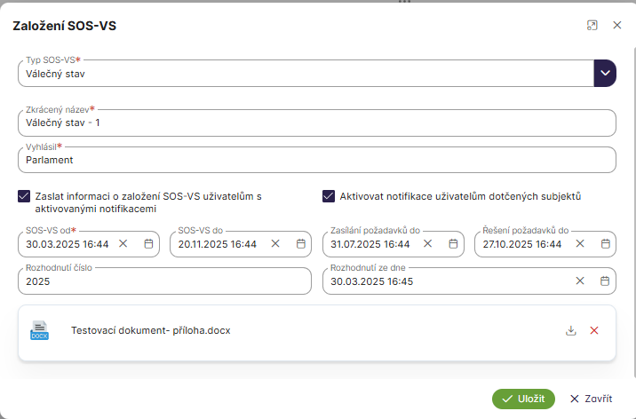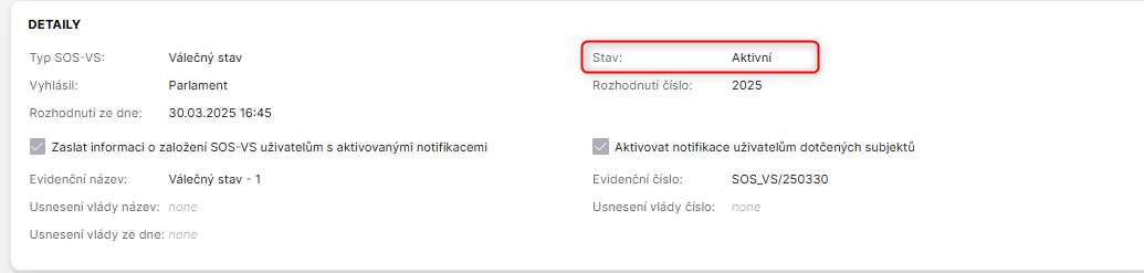 Aktivováním události se změní stav z Koncept SOS_VS na stav Aktivní.